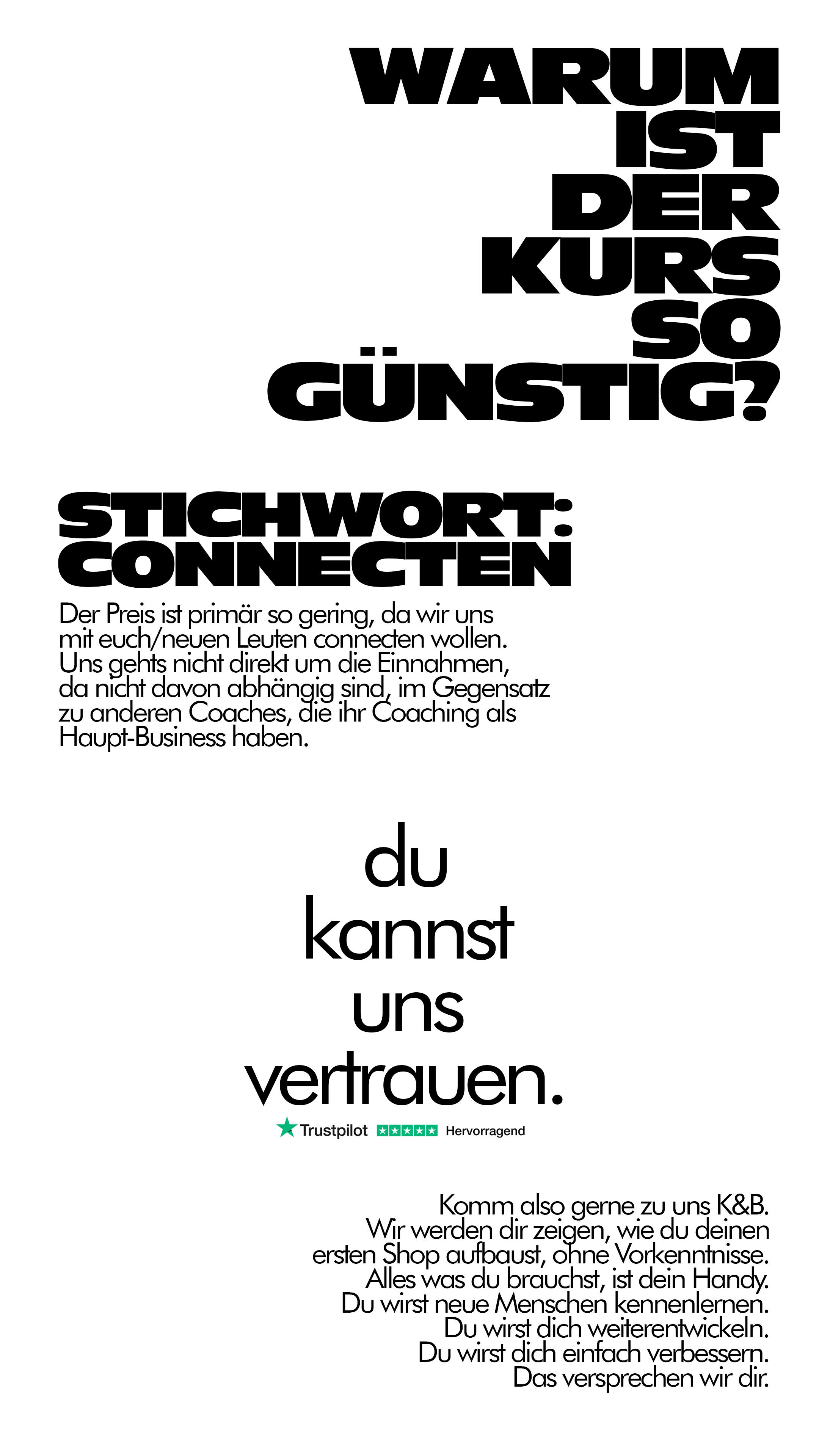 Du kannst SOFORT anfangen (Bei vielen Businesses braucht man ewig lange, bis man wirklich Ergebnisse sieht oder eben überhaupt erst anfangen kann, bei K&B brauchst du nur dein Handy und kannst wirklich direkt starten.)