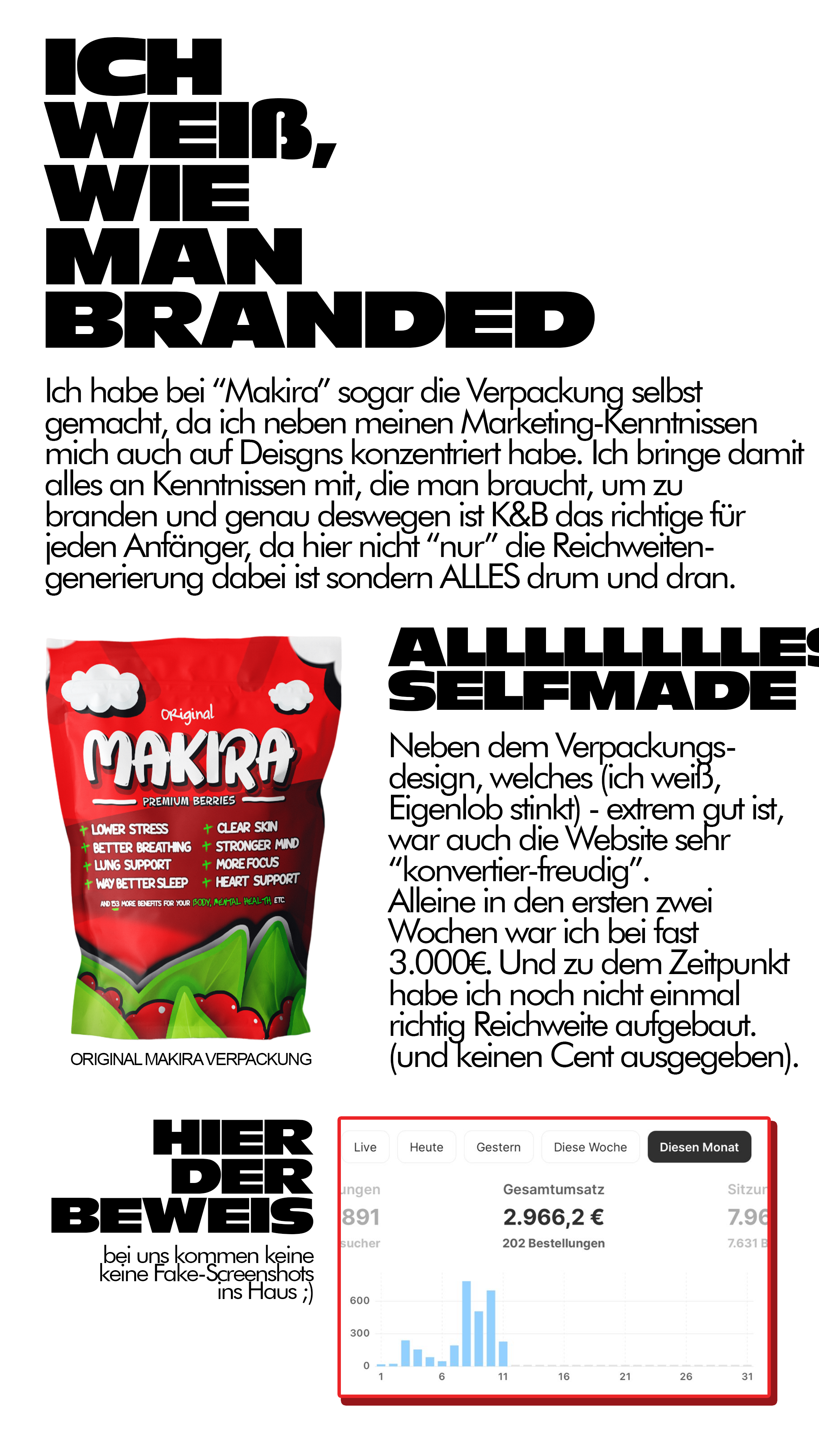 Wirklich Ergebnisse sehen (viele Kurse kosten extrem viel, haben aber nur "YouTube-Video Input", das heißt, dass die meisten Kurse nur das Wissen in ihrem Kurs haben, was man auch ohne Probleme bei YouTube nachschauen könnte, was bei uns jedoch nicht der Fall ist)