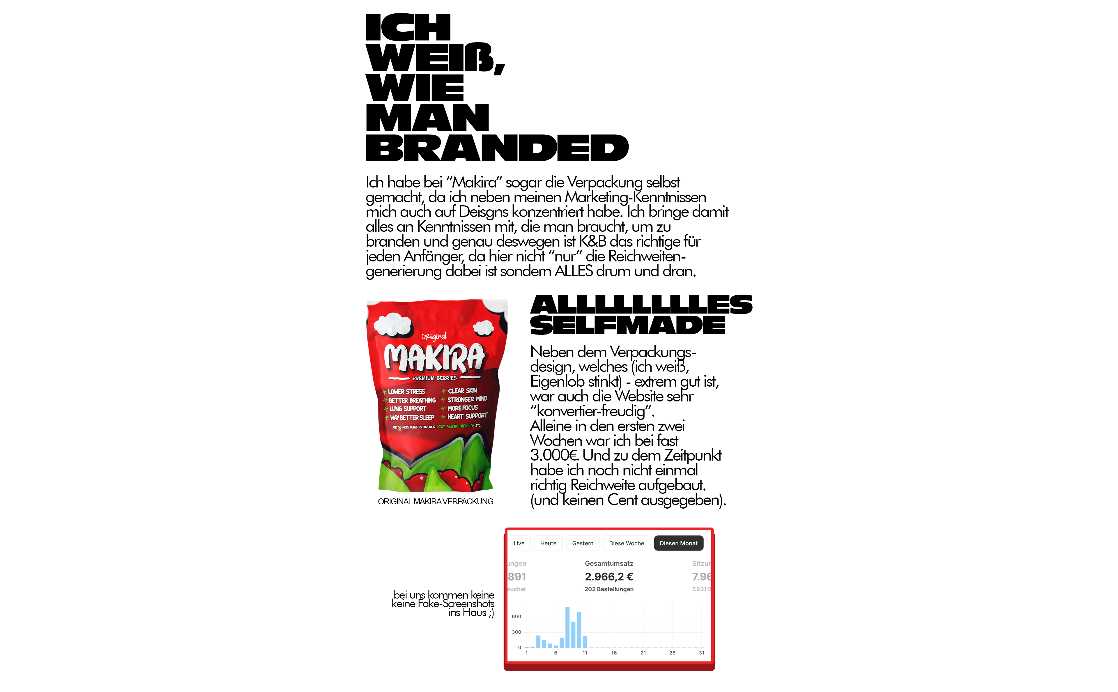 Wirklich Ergebnisse sehen (viele Kurse kosten extrem viel, haben aber nur "YouTube-Video Input", das heißt, dass die meisten Kurse nur das Wissen in ihrem Kurs haben, was man auch ohne Probleme bei YouTube nachschauen könnte, was bei uns jedoch nicht der Fall ist)